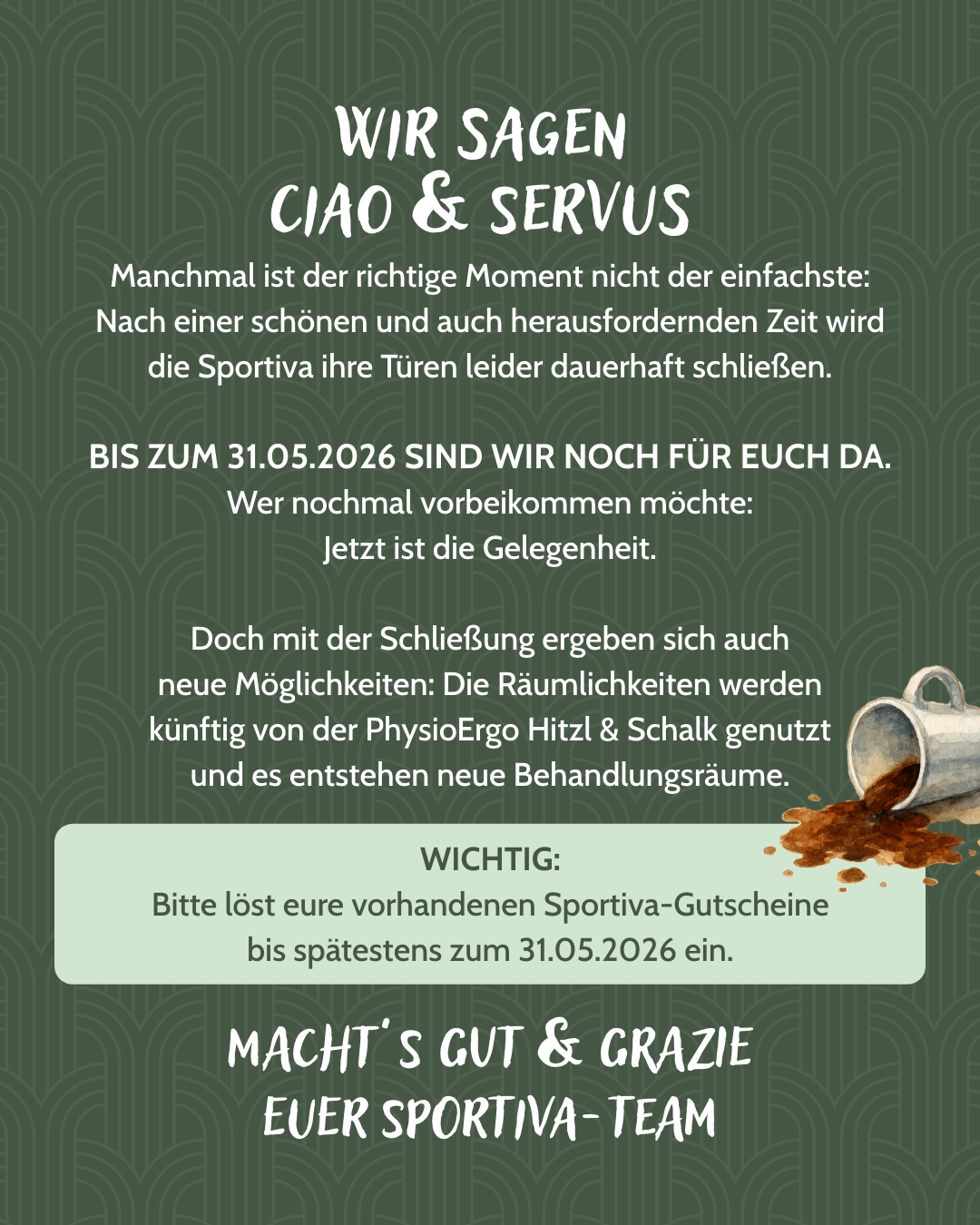 Das Café Bar Sportiva ist ein Treffpunkt für Menschen, die die Freude am Zusammensein schätzen. In unserem gemütlichen Ambiente möchten wir eine Atmosphäre schaffen, die Herzlichkeit, Freundschaft und Gemeinschaft fördert.